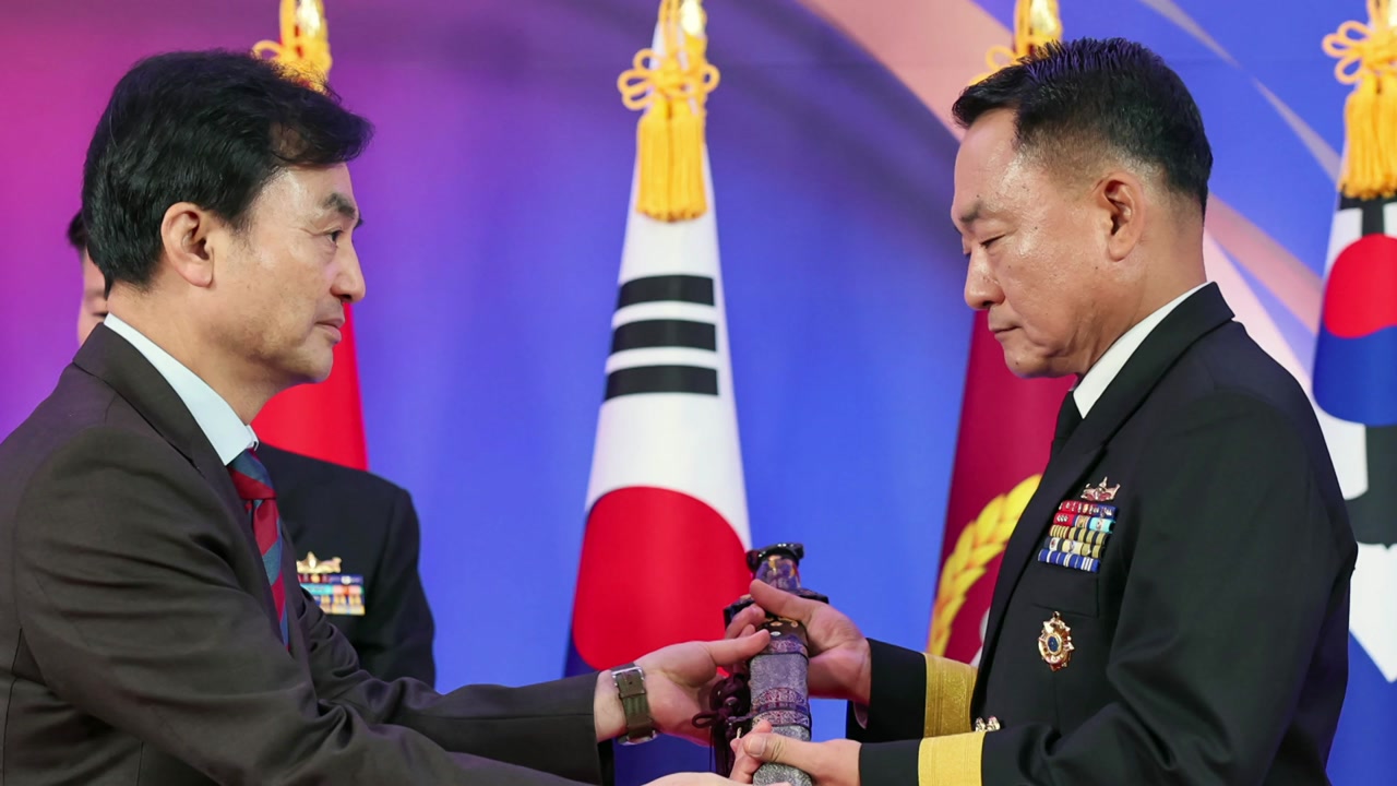 국방부는 이번 삼정검 수여는 비상계엄 후속 조치와 대통령의 해외 순방 일정 등으로 국방부 장관이 수여하게 됐다고 설명했습니다.