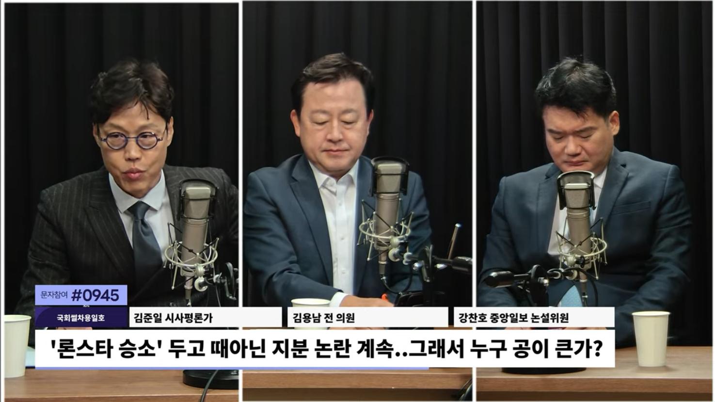□ 출연자 : 김용남 전 의원, 김준일 시사평론가, 강찬호 중앙일보 논설위원