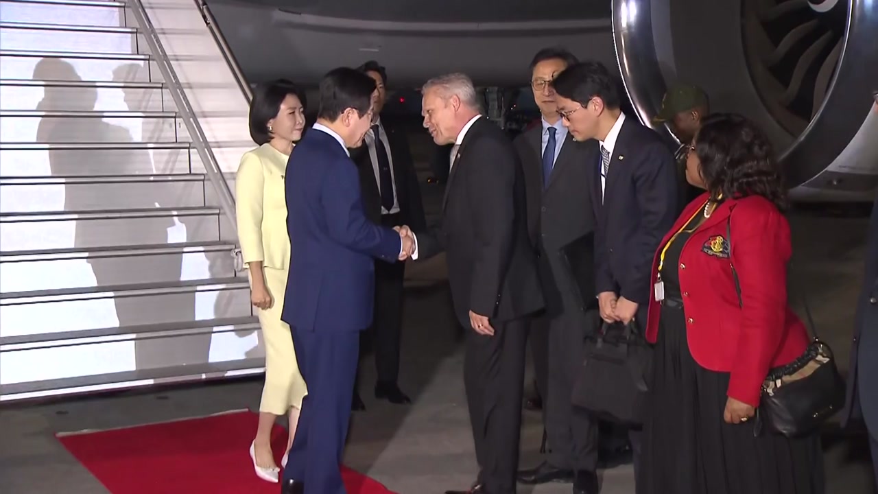 이 대통령과 김혜경 여사, 수행단을 태운 공군 1호기는 우리 시각으로 오늘(22일) 새벽 남아공 정부 측 환대 속에 요하네스버그 탐보 국제공항에 착륙했습니다.