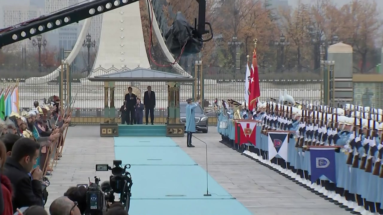 우리 시각으로 오늘 오후 3시쯤에 튀르키예 앙카라 국제공항에 도착을 했고 오전에는 오전 다른 일정들을 보내다가 공식 환영식은 지금 시작이 됐습니다.