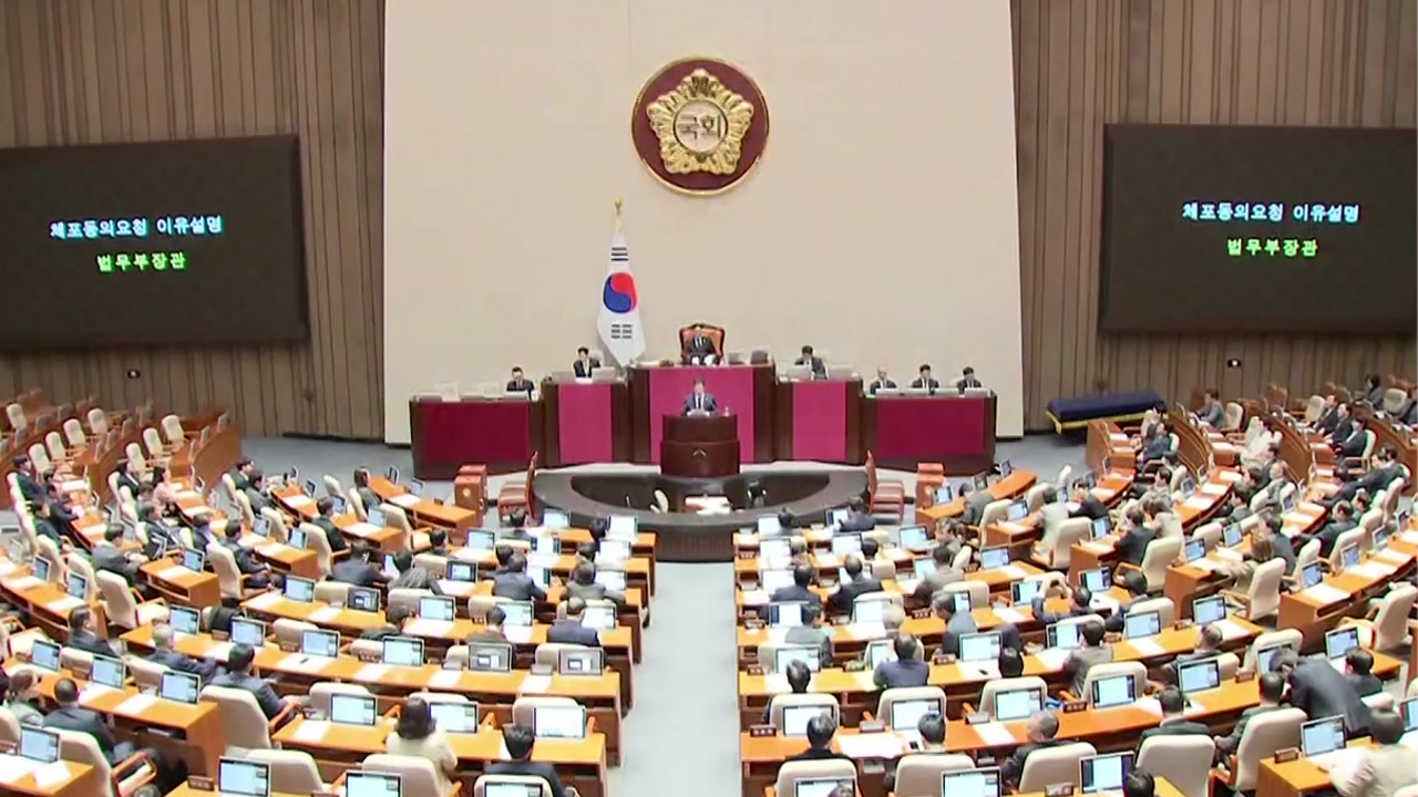 네, 국회 본회의에서 12·3 비상계엄 선포 당시 국회의 계엄 해제 표결을 방해한 혐의를 받는 국민의힘 추경호 전 원내대표에 대한 체포동의안이 여권 주도로 가결됐습니다.