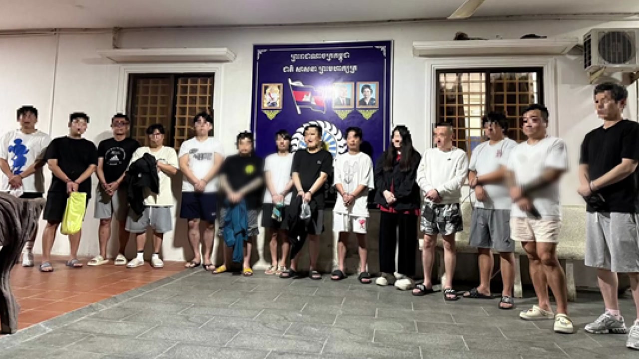 캄보디아 경찰이 시아누크빌에 있는 범죄 단지를 급습해 휴대전화와 태블릿 등을 압수합니다.