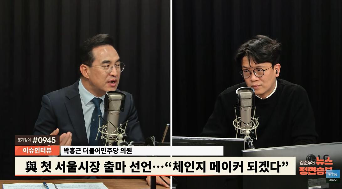 ☆김준우: 새로운 서울을 위한 체인지 메이커가 되겠다. 이재명 대통령의 동반자로 서울의 위대한 미래를 설계하고자 한다. 어제 서울시장 출마 선언을 한, 박홍근 의원의 일성이었는데요. 스튜디오 모시면서 이야기 들어보도록 하겠습니다. 의원님 안녕하세요?