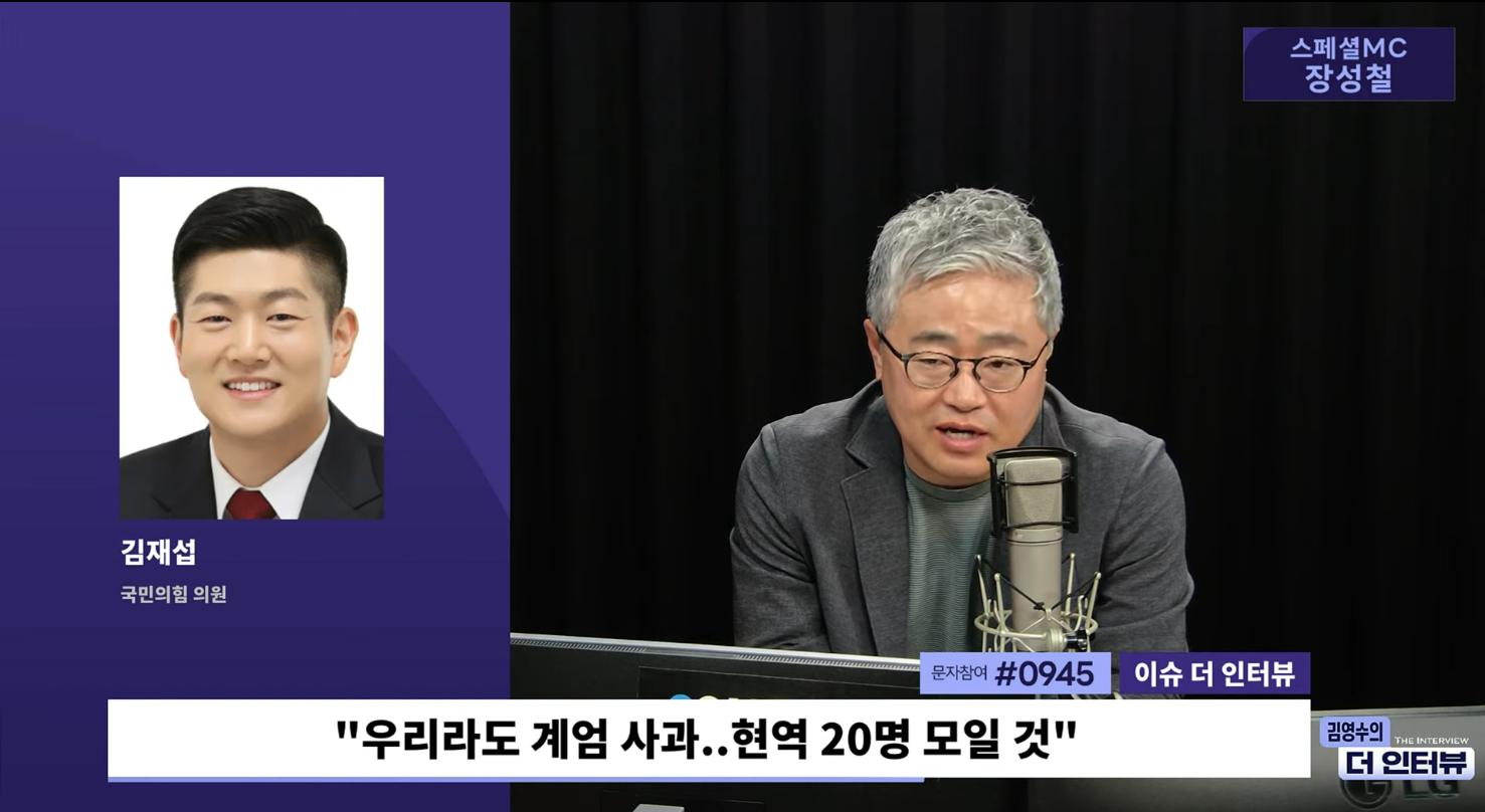 ◆ 장성철 : <더 인터뷰> 계속 진행하겠습니다. 다음 주 계엄 1주년을 앞두고 국민의힘이 대국민 사과를 해야 되네 말아야 되네 이거 가지고 아직 정리가 되지 않고 있습니다. 그런데 지도부가 안 하면 우리끼리도 하겠다라고 용기 있게 목소리를 내기 시작한 국민의힘 소장파 의원이죠. 대한민국 보수파 정치의 미래 김재섭 의원을 연결해서 이야기를 나눠보도록 하겠습니다. 의원님 나와 계시죠?