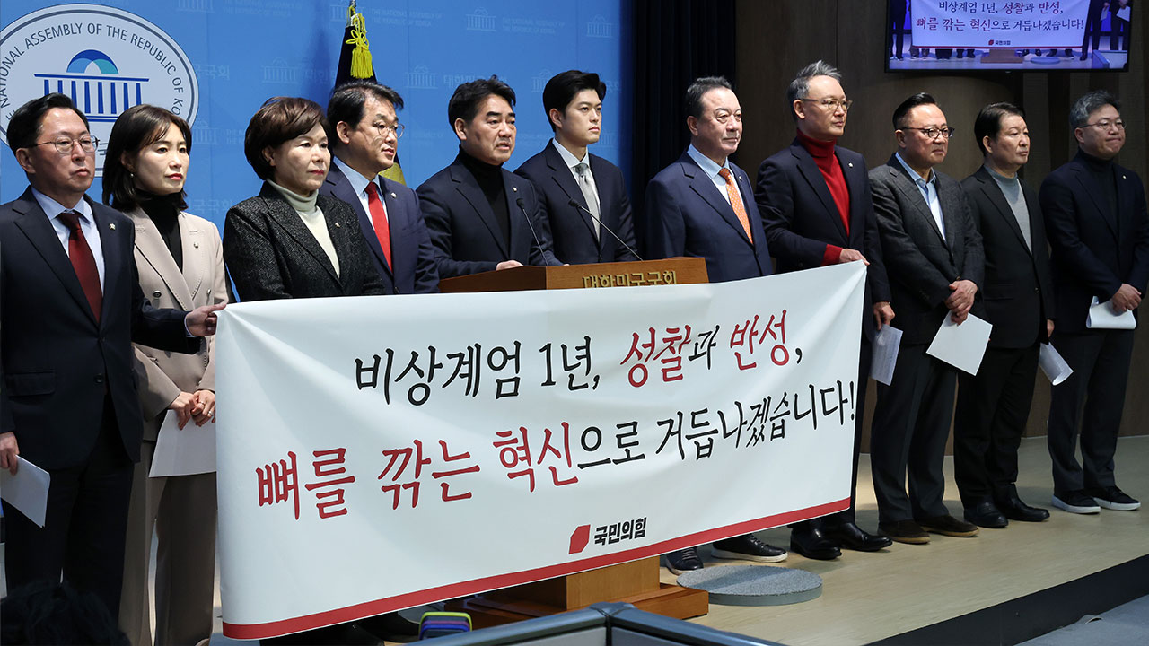 장동혁 대표가 벌써 며칠 전에도 이런 얘기를 했었어요.의회 폭거와 국정 방해 때문에 계엄이 있었다.그러나 결과적으로 책임을 통감한다, 이런 얘기를 했었잖아요, 대구 장외 집회에서. 오늘 우리 앵커님 말씀처럼 그런 얘기를 또 했어요. 그렇기 때문에 하나로 뭉쳐 제대로 싸우지 못했던 국민의힘에 책임이 있다. 저게 무슨 말뜻을 모르겠어요.며칠 전에도 과거에서 벗어나라는 얘기가 과거에서 머무르는 거다 이런 말씀을 했던데, 그 말도 저는 논리의 옳고 그름을 떠나서 그 말의 의미를 해석할 수가 없고 이것도 마찬가지예요.지금 하나로 뭉쳐서 말하자면 제대로 싸우지 못했다는 게 국민의힘이 윤석열 전 대통령의 내란행위, 이른바 비상계엄을 막지 못해서 죄송한 게 아니고 그 비상계엄을 하고 난 다음에 하나로 단일대오로 뭉쳐서 민주당이나 이런 데에 제대로 싸우지 못했기 때문에 국민의힘이 그 책임에서 자유롭지 못하다 이렇게 하고 있는 거거든요.사과할 것 같지 않았어요, 저는. 사과할 리가 없을 거라고 봤는데 정말 사과를 안 했어요. 사과를 안 하는 걸 떠나서 비상계엄이 의회 폭거에 맞서기 위한 계엄이었다.이건 저는 국민에 대한 선전포고라고 생각해요.물론 송언석 원내대표나 국민의힘 의원들이 산발적으로 산만하게 사과 성명도 내고 그랬어요.25명이 사과문도 내고 그랬습니다마는 과연 이런 정당이 국민의힘 의원들이 전부 그런 건 아니겠습니다마는 과연 제1야당으로서 존재 가치는 있는 것인지 묻지 않을 수가 없습니다.어떻게 계엄이 1년 되고 난 다음에 어떻게 이런 말을 할 수가 있죠? 가만히 있든가. 비상계엄이 의회 폭거에 맞서기 위한 계엄이었다.이건 윤석열 전 대통령이 지난해 12월 3일날 반국가세력과 종북세력을 척결하기 위해서 비상계엄을 선포한다는 거하고 똑같은 말이에요.하나도 바뀌지 않았다.정말 이런 분이 제1야당 대표의 자격이 있는지 묻지 않을 수가 없습니다.