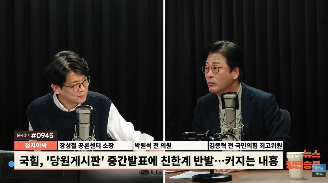 ☆김준우: 지금까지 김종혁 전 국민의 힘 최고위원, 박원석 전 의원, 장성철 공론센터 소장이었습니다.