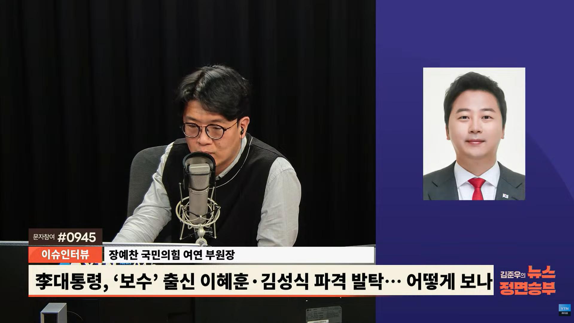 ◆ 장예찬 : 지도부 입장 전에 제가 날짜나 내용을 특정하기는 적절치 않은 것 같고요. 다만 오늘도 장동혁 대표가 호남 현장 방문하면서 중도 확장은 하되 당원들에게 상처를 입히고 당을 배신한 인사는 과감하게 조치하겠다고 말했잖아요. 장동혁 대표가 생각하는 중도 확장의 방향은 경제나 민생 관련된 부분에서 우리가 어떤 정책을 내놓겠다는 것이지, 그게 소위 말하는 당내에서 지속적으로 내부 분란을 일으키는 사람들을 어설프게 포용한다든가, 이혜훈 전 의원 같은 사람들에게 손을 내민다던가 하는 방식은 아닐 것이라는 정도가 당 내의 공감대라고 생각해 주시면 되겠습니다.