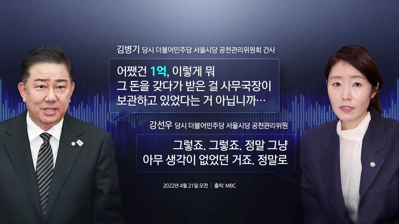 [김병기 / 당시 민주당 서울시당 공천관리위원회 간사 : 어쨌건 1억, 이렇게 뭐 그 돈을 갖다가 받은 걸 사무국장이 보관하고 있었다는 거 아닙니까.]