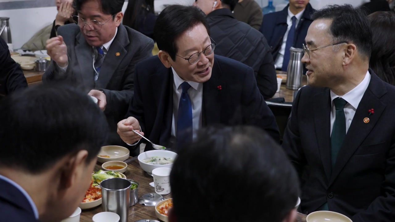 이 대통령은 어제 오후 국무회의를 마친 뒤 김민석 국무총리, 김영훈 고용노동부 장관 등과 함께 인근 수제비 식당을 찾아 줄을 선 뒤 식사했습니다.