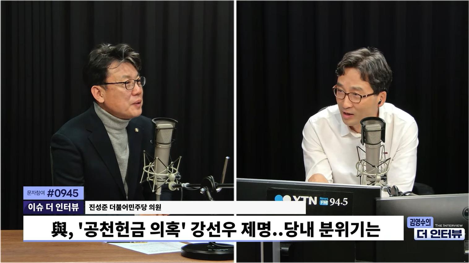◆ 김원장 : 김영수 앵커가 개인 사정으로 자리를 비워서 오늘 제가 하루 대신 진행합니다. 오늘 새해 첫 <이슈 더 인터뷰> 여당을 대표하시는 정책통이시죠? 여러 의혹에 휩싸인 김병기 원내대표가 물러나면서 임기가 넉 달 조금 더 남았는데. 그 원내대표 자리에 출사표를 던지셨어요. 당의 혼란을 수습하고, 또 연임은 하지 않겠다고 하셨고요. 강서 을이 지역구이시죠, 민주당 진성준 의원 오늘 YTN 스튜디오에 나와 계십니다. 어서 오세요.