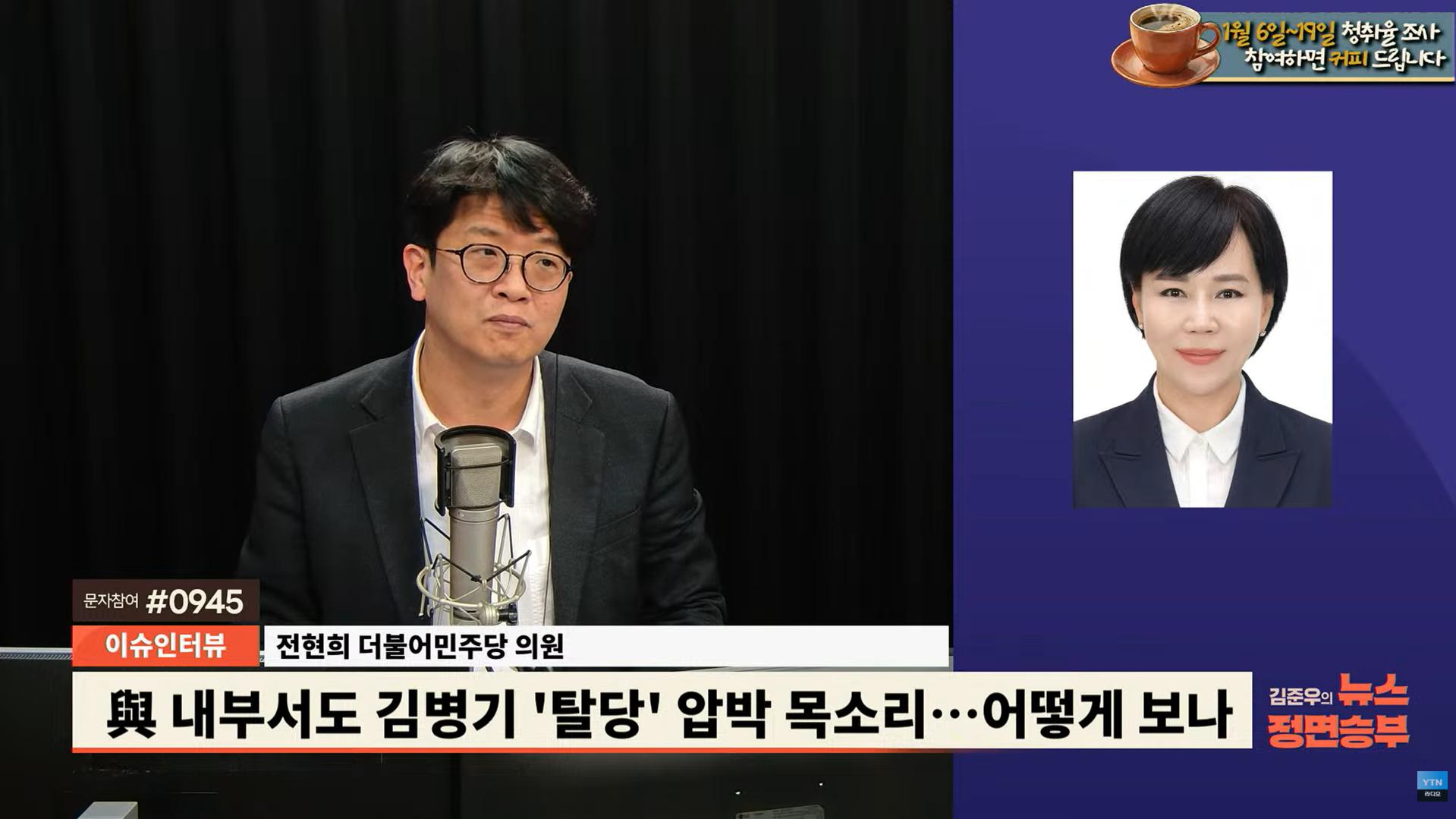 ◆ 전현희 : 일단 12일 정도에 윤리심판은 결정 내용이 나올 것 같습니다. 물론 그런 불미스러운 일이 생긴 것에 대해서는 또 전 지도부의 일원으로서 매우 국민께 송구스럽고, 있어서는 안 될 일이 발생했다고 생각을 하고 있고요. 이 부분에 대해서는 어떤 형식이든지 당에서 책임 있는 조치가 필요하다 이런 입장에는 공감을 하고 있습니다. 다만 당사자의 주장이 본인이 억울하다는 걸 주장을 하고 있고요. 그리고 12일에 윤리 심판은 결정이 예정이 되어 있기 때문에, 이 결과에 따라서 판단하는 것이 현재로서는 최선의 방법이 아닌가 생각합니다.