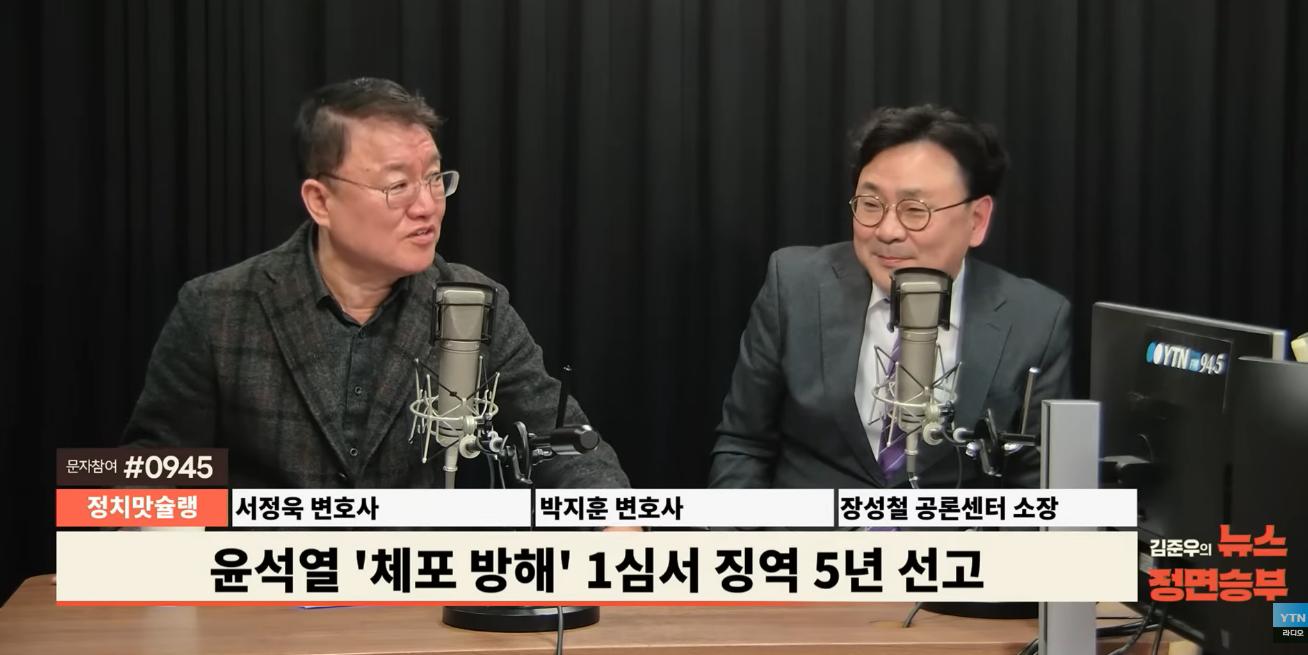 ◆ 김준우 : 오늘 법원에서 윤석열 대통령 징역 5년 선고했습니다. 특검 구형은 10년이었는데요. 어떻게 보셨는지 이건 두 분 변호사님 이야기부터 듣죠.