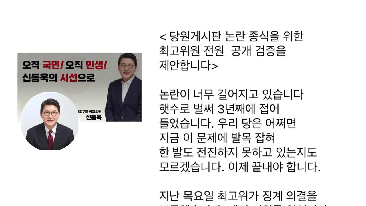 국민의힘 신동욱 최고위원은 한동훈 전 대표의 ’당원 게시판’ 징계 문제로 당 안팎 분란이 더 이어져선 안 된다며, 최고위원회 차원의 공개검증을 제안했습니다.