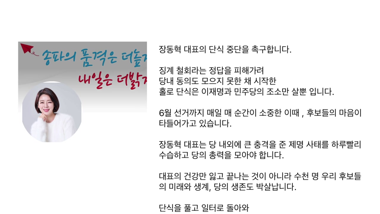 배현진 의원은 오늘(17일) SNS에 글을 올려 징계 철회라는 정답을 피해 가려 당내 동의도 모으지 못하고 시작한 단식은 이재명 대통령과 민주당에 조소만 살 뿐이라며 이같이 적었습니다.