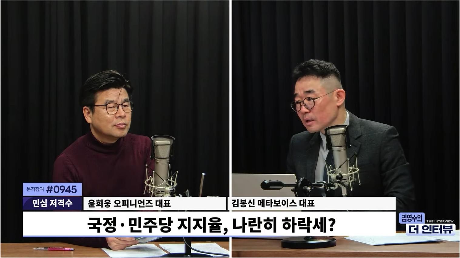 ◆ 김영수 : <민심 저격수> 코너 바로 이어가겠습니다. 김봉신 대표, 윤희웅 대표와 함께합니다. 어서 오세요.