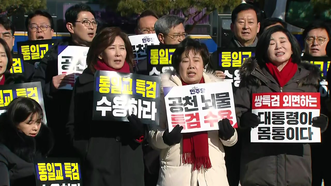 국민의힘이 청와대 앞에서 통일교 금품수수·공천 헌금 의혹을 수사하는 ’쌍 특검’ 수용 촉구 규탄대회를 진행했습니다.