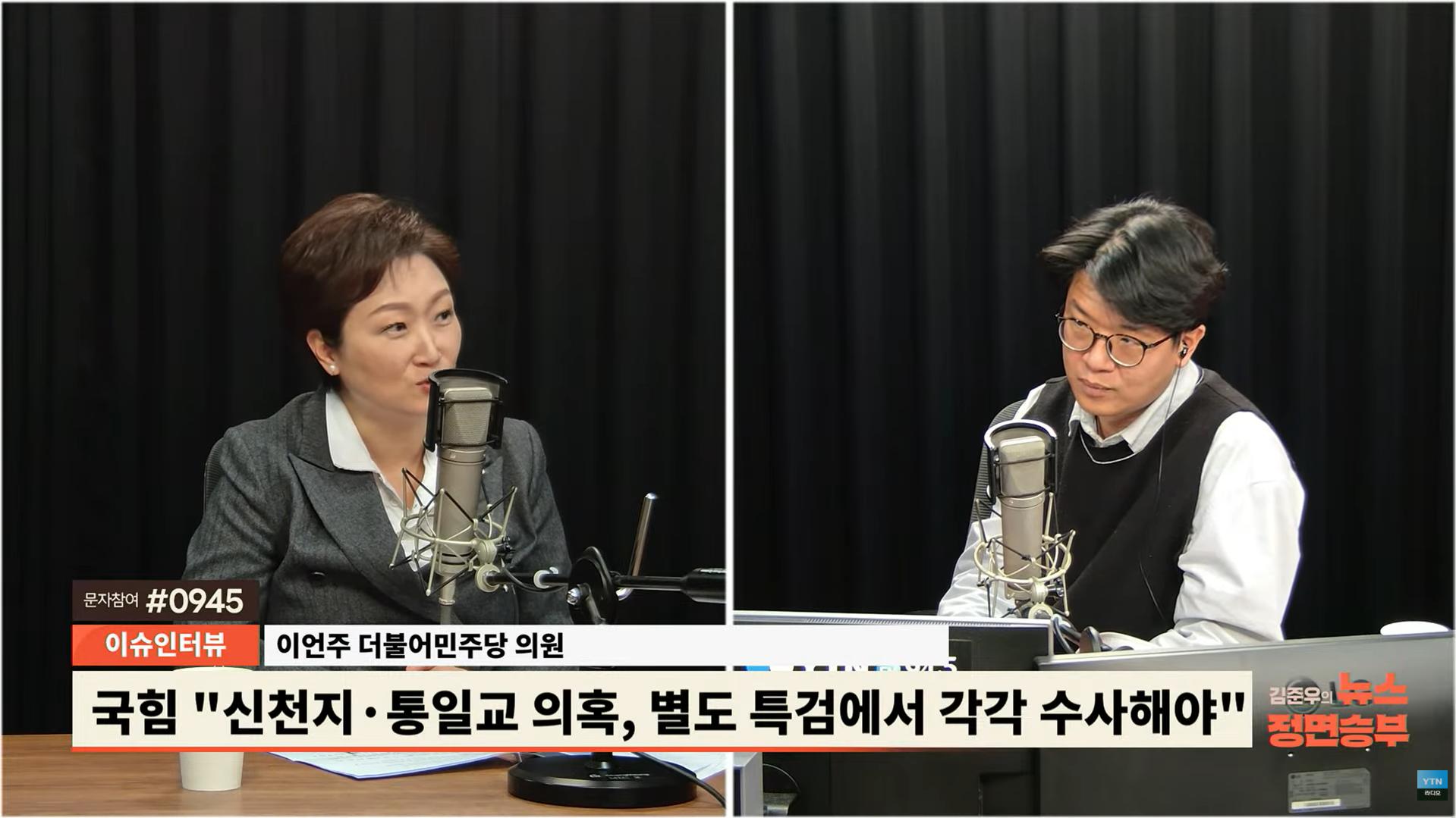◆ 이언주 : 무슨 뜻인지 정확하게 파악해 볼 필요가 있을 것 같아요. 일단 통일교 특검하고 신천지 특검 나중에 다시 논의하자 이건지