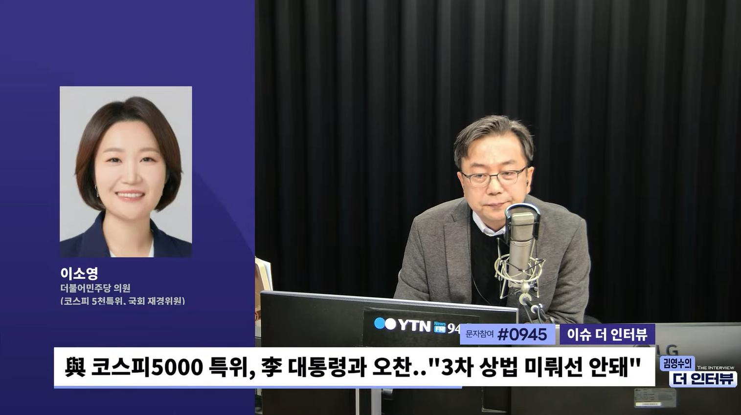 □ 출연자 : 이소영 더불어민주당 의원(민주당 코스피 5천특위, 국회 재경위원)