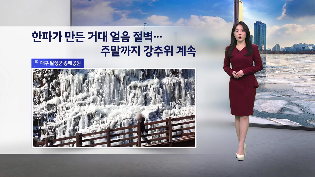 계속되는 추위에 대구 달성군 송해공원에는 폭포가 그대로 얼어붙으면서 거대한 얼음 절벽이 만들어졌는데요.