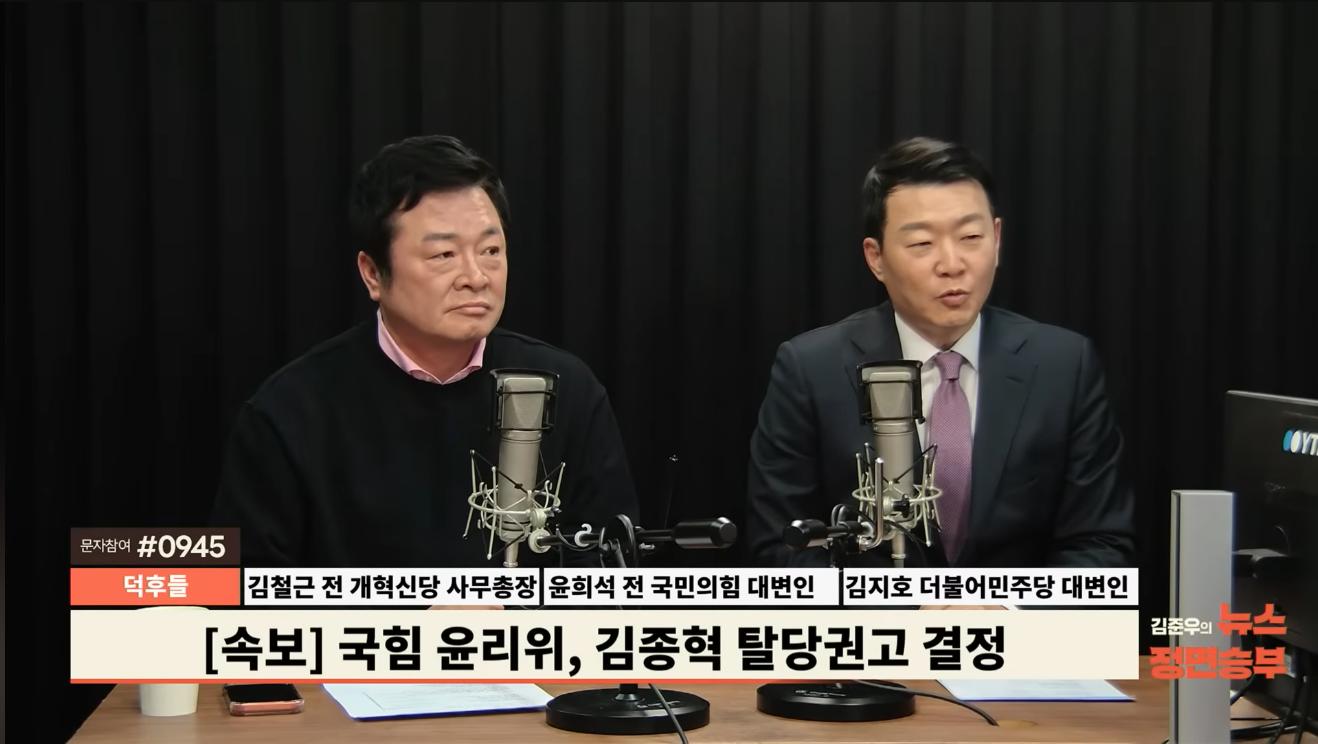 ● 김준우 : 원래 김종혁 전 국민의힘 최고위원 저희 방송 패널이시기도 하지만 당무감사위원회에서는 2년 당원권 정지로 권고가 났는데 최종적으로 탈당 권고 결정으로 났습니다. 탈당 권고 결정은 뭐고 이게 어떤 의미라고 봐야 되나요?