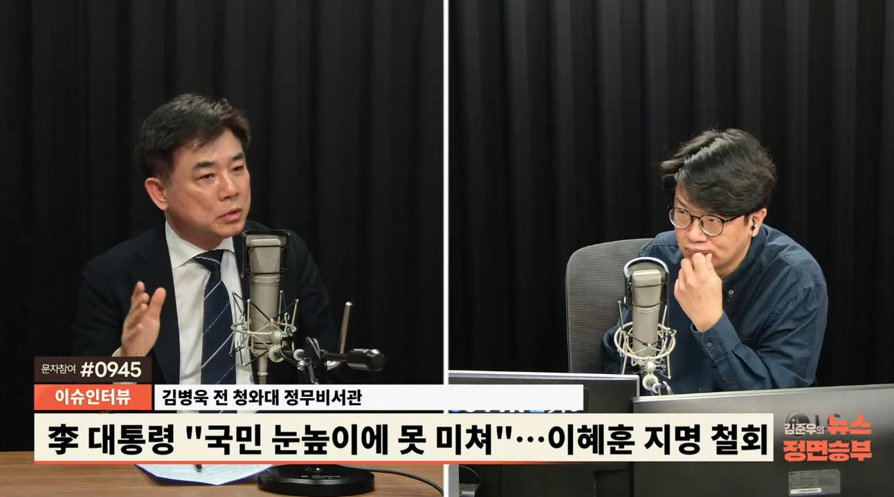 ● 김준우 : 아닙니다. 바쁘신데요. 뭐 사실 요즘 트렌드가 이상한 거죠. 저는 대통령실 수석 비서실장 비서관 이런 분들이 방송에 나오는 게 오히려 낯설어요. 특정 유튜브만 많이 나오셔서 그게 더 좀 그렇습니다만 어쨌든 나오는 자체가 나쁜 일은 아닌데 아직은 좀 낯선, 왜냐하면 너무 바빠서 언론 나올 일이 그렇게 많을까, 이런 생각도 들어요.