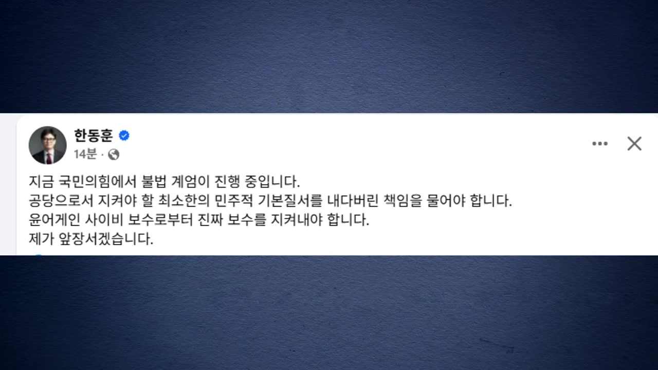 한동훈 전 국민의힘 대표는 친한계 김종혁 전 최고위원에 대한 윤리위의 ’탈당 권고’ 징계 결정 등 일련의 상황을 두고 국민의힘에서 불법 계엄이 진행 중이라고 비판했습니다.