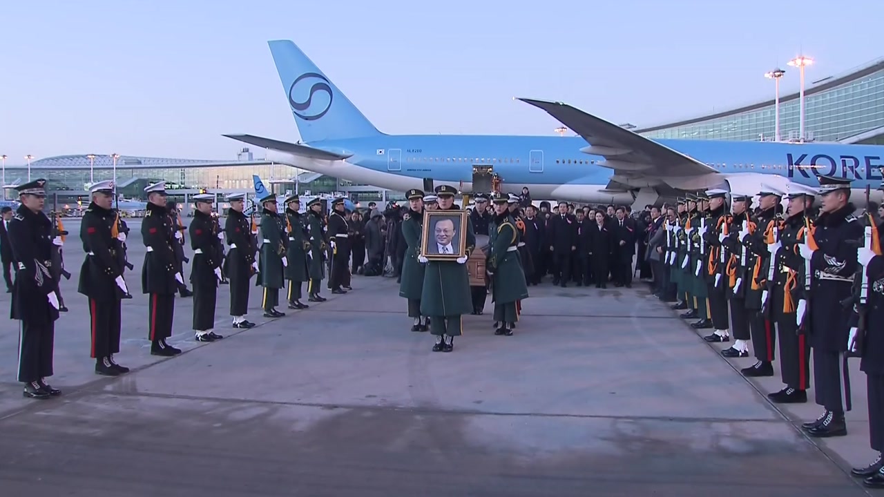 우원식 국회의장과 김민석 국무총리 등이 직접 공항에 나와 고인을 맞이하며 최고 예우를 갖췄습니다.