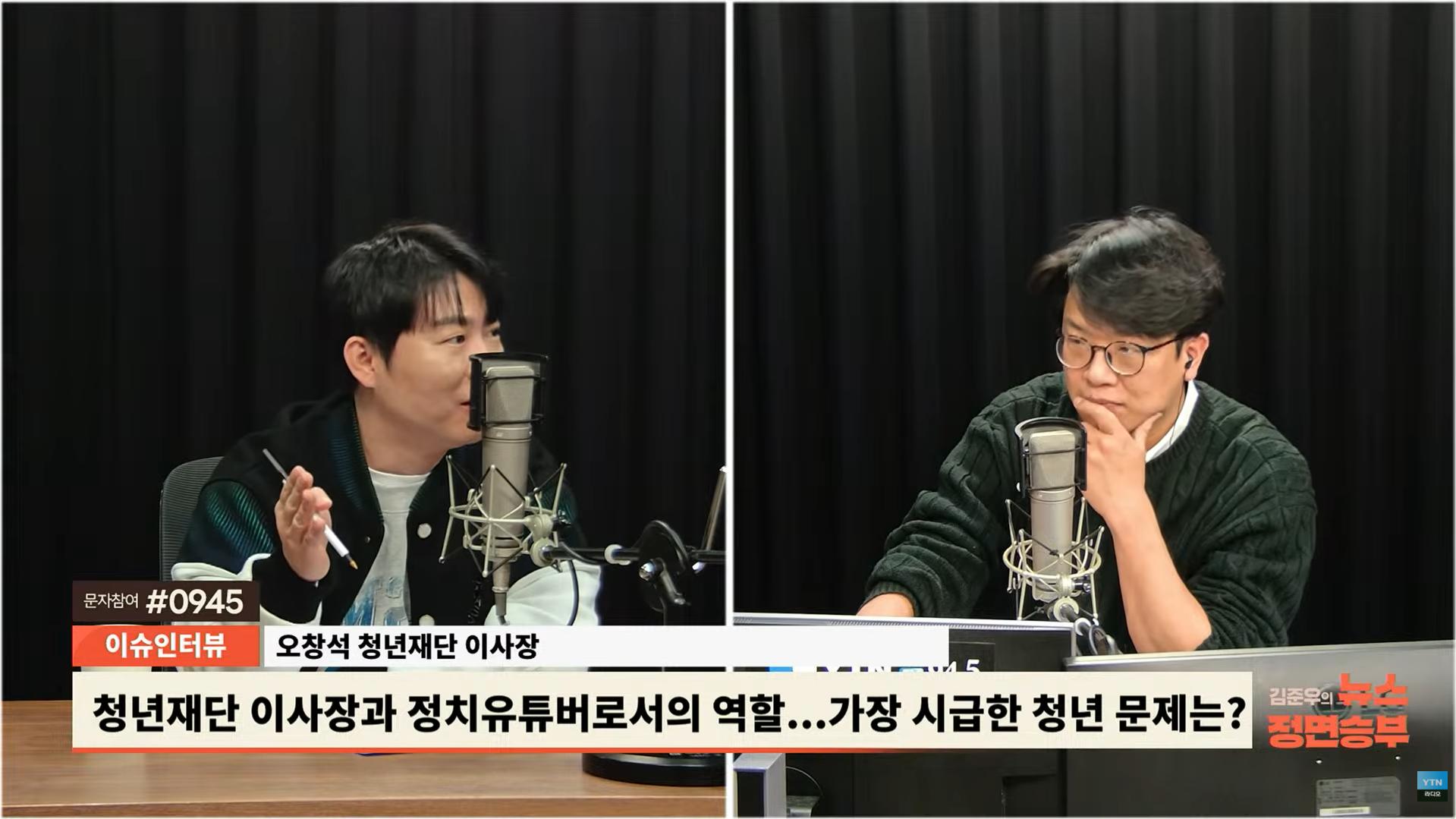 ◇ 김준우 : 3부에서는 이재명 정부의 청년 정책의 핵심에 있는 한 분을 모셨습니다. 남천동에 산다고 알려진 오창석 청년재단 이사장입니다. 안녕하세요.