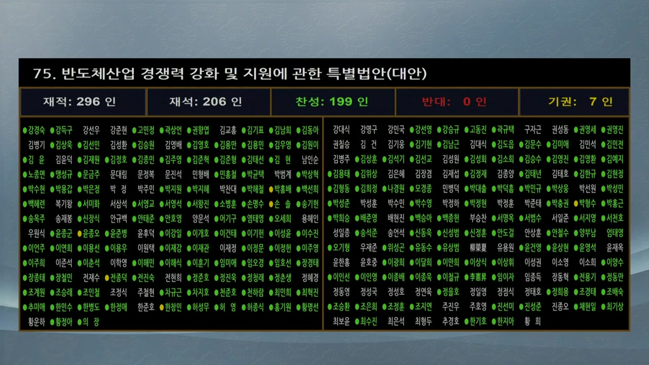 국민의힘이 요구해 온 반도체 업계에 대한 주 52시간 근로시간 예외 적용 조항은 소관 상임위원회에서 계속 논의한다는 부대 의견을 달고, 법안에서는 제외됐습니다.