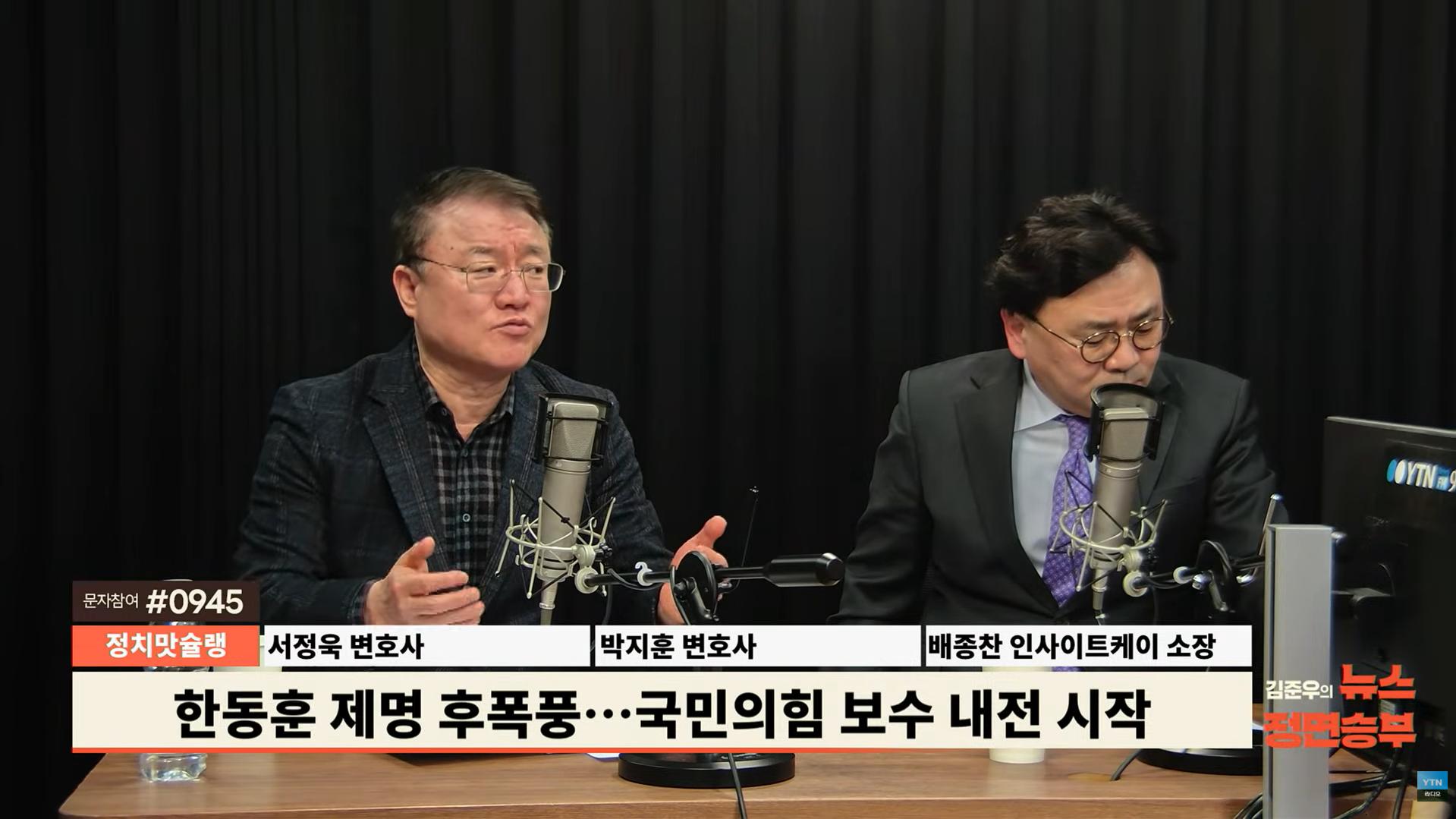 ★ 박지훈 : 한동훈 전 대표 관련해서는 서정욱 변호사 저랑 의견이 거의 거의 99%가 같습니다.