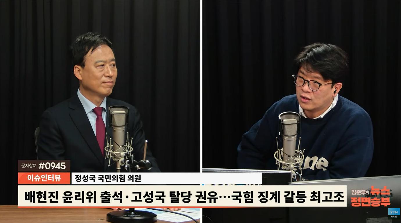 ◆ 김준우 : 네. 국민의힘 소장파 정성국 의원 스튜디오 나오셨습니다. 안녕하세요.