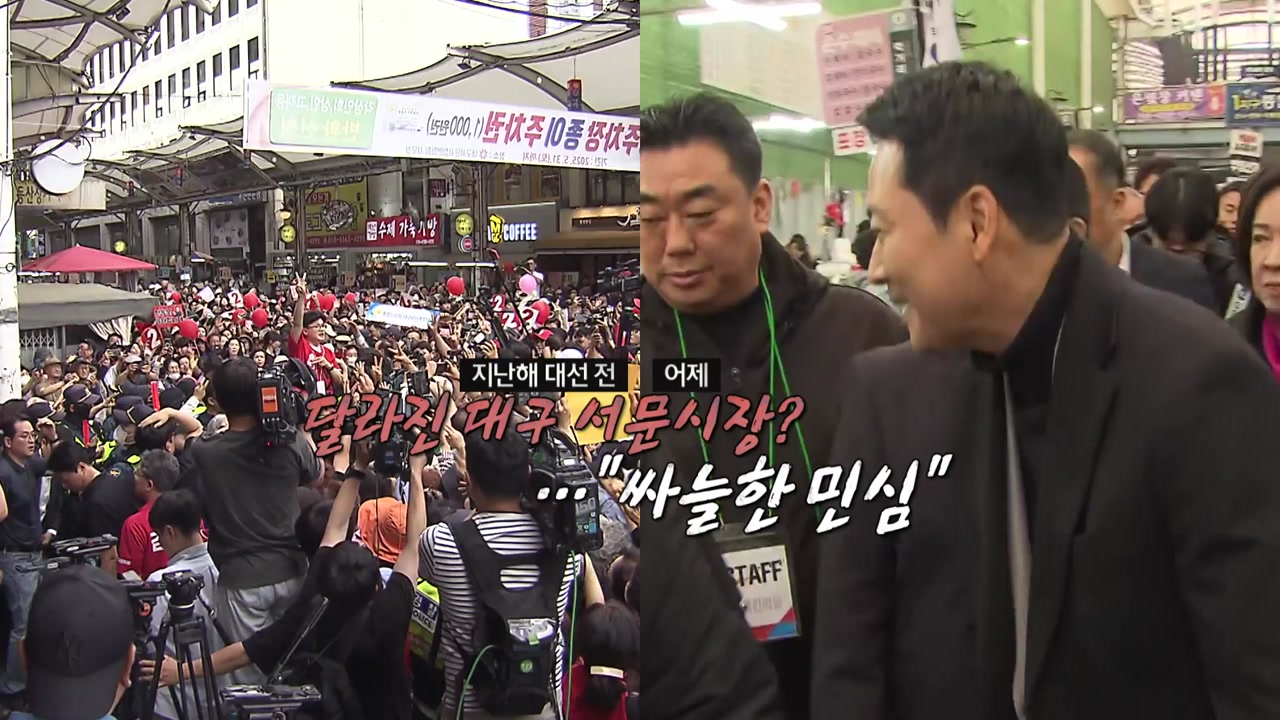 어묵에 칼제비 면치기 먹방까지 선보였지만, 과거 보수 정당 전·현직 지도자가 찾았을 때보다 한산한 모습이, 싸늘해진 민심을 반영했다는 분석입니다.