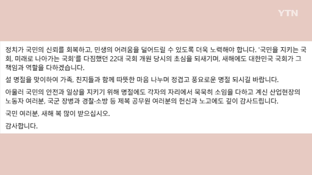 우 의장은 오늘(16일) SNS에 이 같은 내용의 설 인사를 전했습니다.