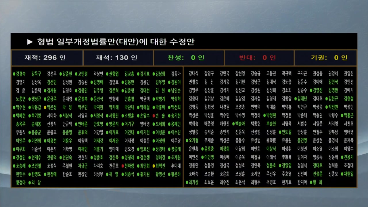 국회는 오늘(26일) 본회의에서 이 같은 내용을 담은 형법 개정안을 재석 170인 가운데 찬성 163인, 반대 3인, 기권 4인으로 가결 처리했습니다.