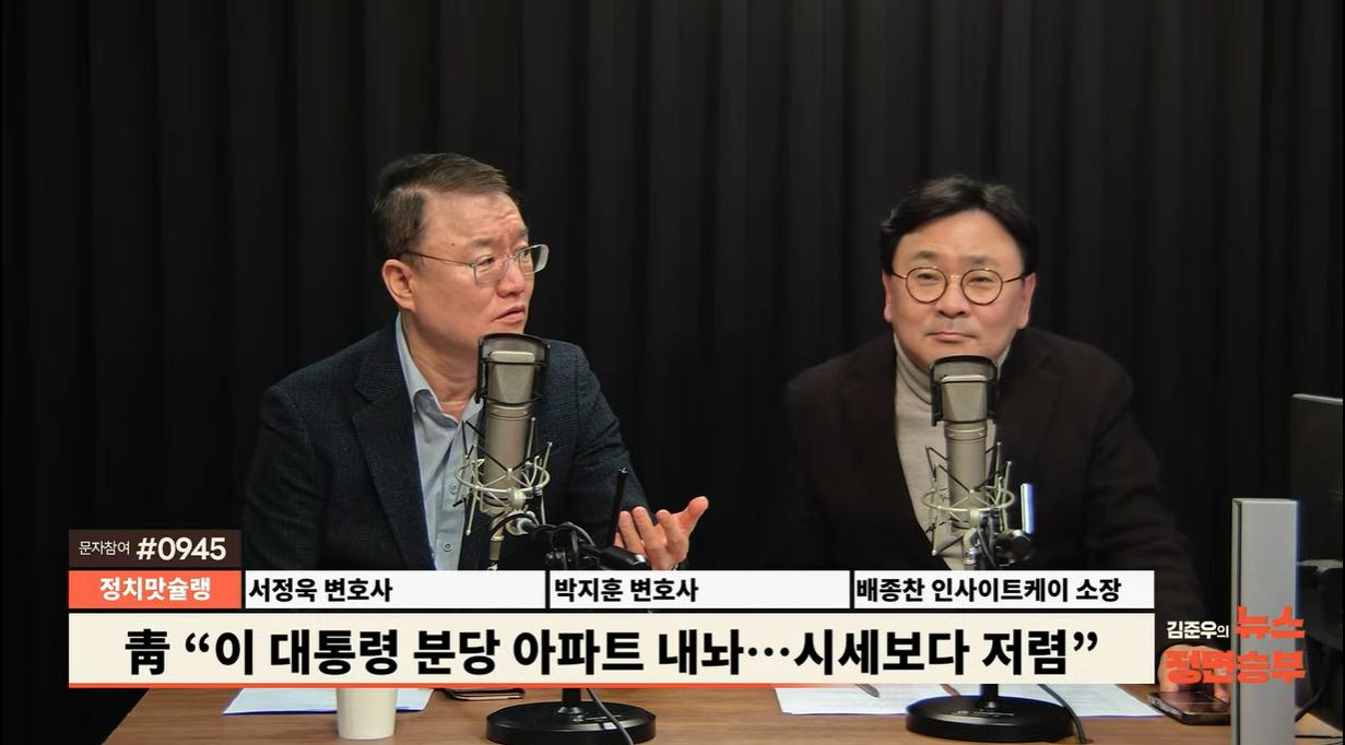 ◆ 김준우 : 아까 제가 오프닝에서 얘기했지만 이재명 대통령이 분당에 집을 내놨는데, 성남 시민 박지훈 변호사님 혹시 매수 의사 없습니까? 시가보다 낮게 나왔다고 하던데.