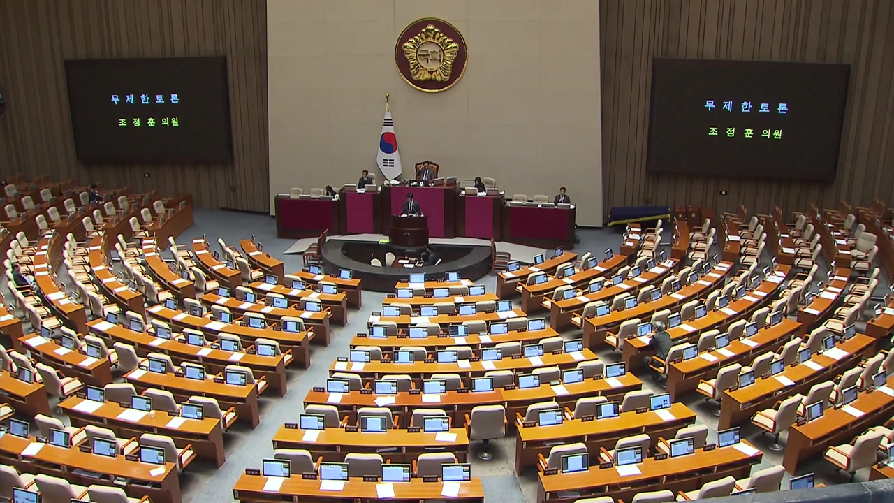 그러나 국민의힘은 민주당의 반복되는 '본회의 직전 땜질 수정'에 반발하는 차원에서, 또 앞서 통과된 '사법 3법'에 항의하는 목적에서 예정대로 필리버스터를 진행했습니다.