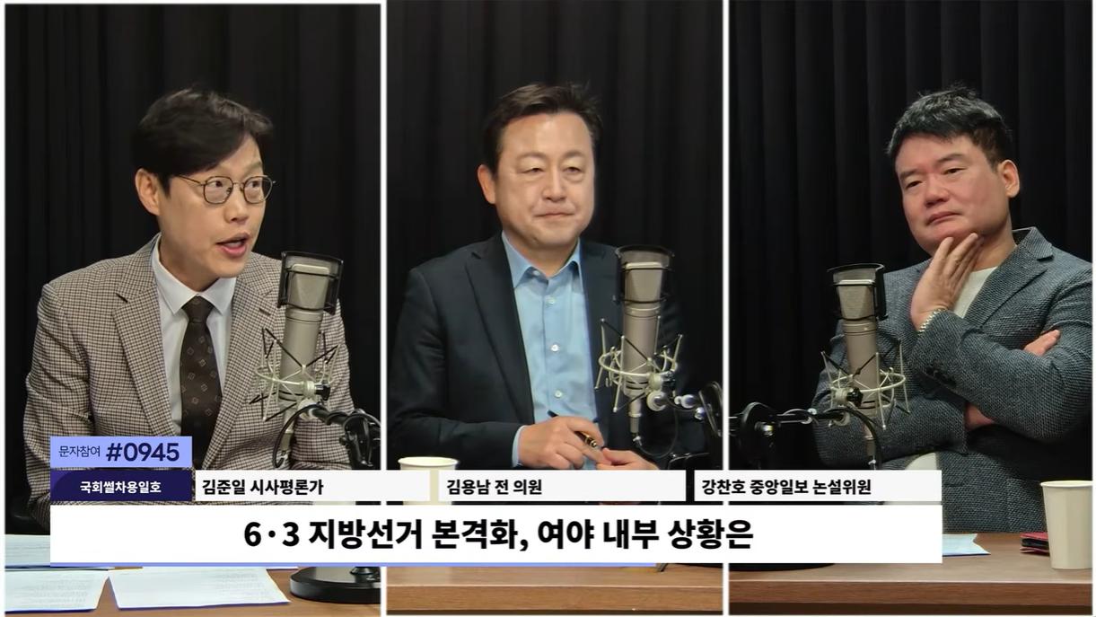 □ 출연자 : 김용남 전 의원, 김준일 시사평론가, 강찬호 중앙일보 논설위원