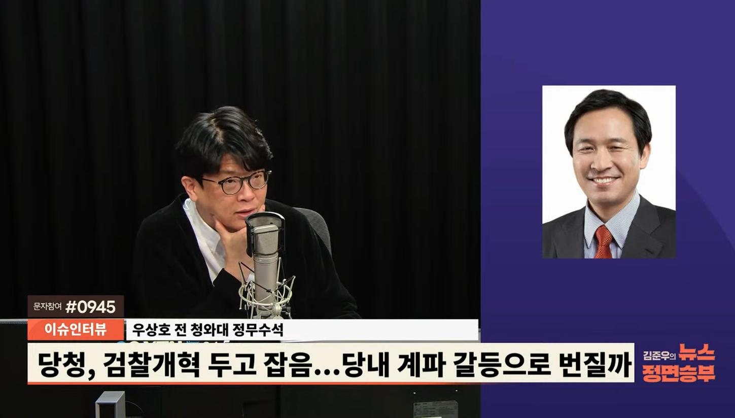 ◆ 우상호 : 아니 대통령께서 저렇게 해가지고 호소하셨는데 계속 본인의 입장을 말하는 거는. 한 번 정도 더 얘기하는 건 괜찮지만 마치 정면으로 거역하듯이 하는 거는... 제가 볼 때는 이젠 당내 분란이 아니라 대통령실과의 문제가 발생할 수도 있지 않겠어요? 그래서 지금부터 더 서로 지혜로워졌으면 좋겠다. 그렇게 생각합니다.