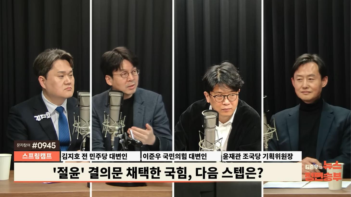 ■ 대담 : 김지호 전 더불어민주당 대변인, 이준우 국민의힘 대변인, 윤재관 조국혁신당 전략기획위원장