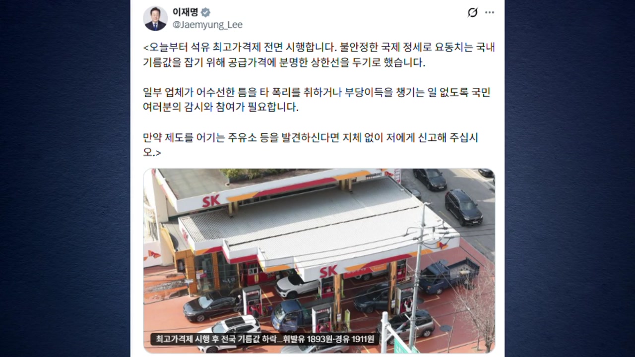 이 대통령은 오늘(13일) SNS에, 석유 최고가격제 시행으로 전국 기름값이 떨어졌단 내용의 기사를 올린 뒤 이같이 적었습니다.
