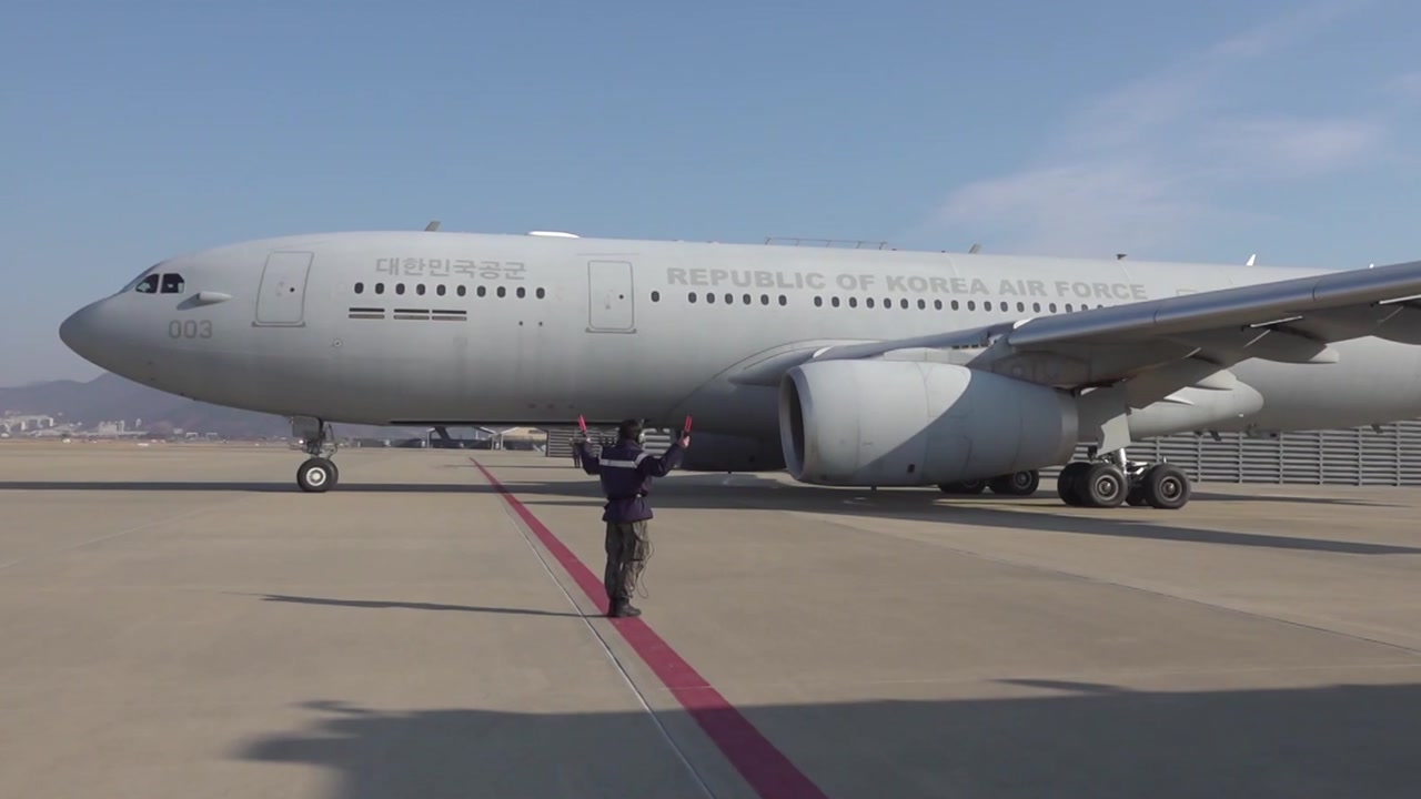 현지 시간 14일 밤, 우리 시간으로 오늘 새벽 4시쯤, 우리 국민 204명을 태우고 사우디아라비아 수도 리야드를 출발한 공군의 다목적공중급유수송기 KC-330은 중간 기착지인 태국 방콕을 경유한 뒤 저녁 6시쯤 경기도 성남의 서울공항에 착륙했습니다.