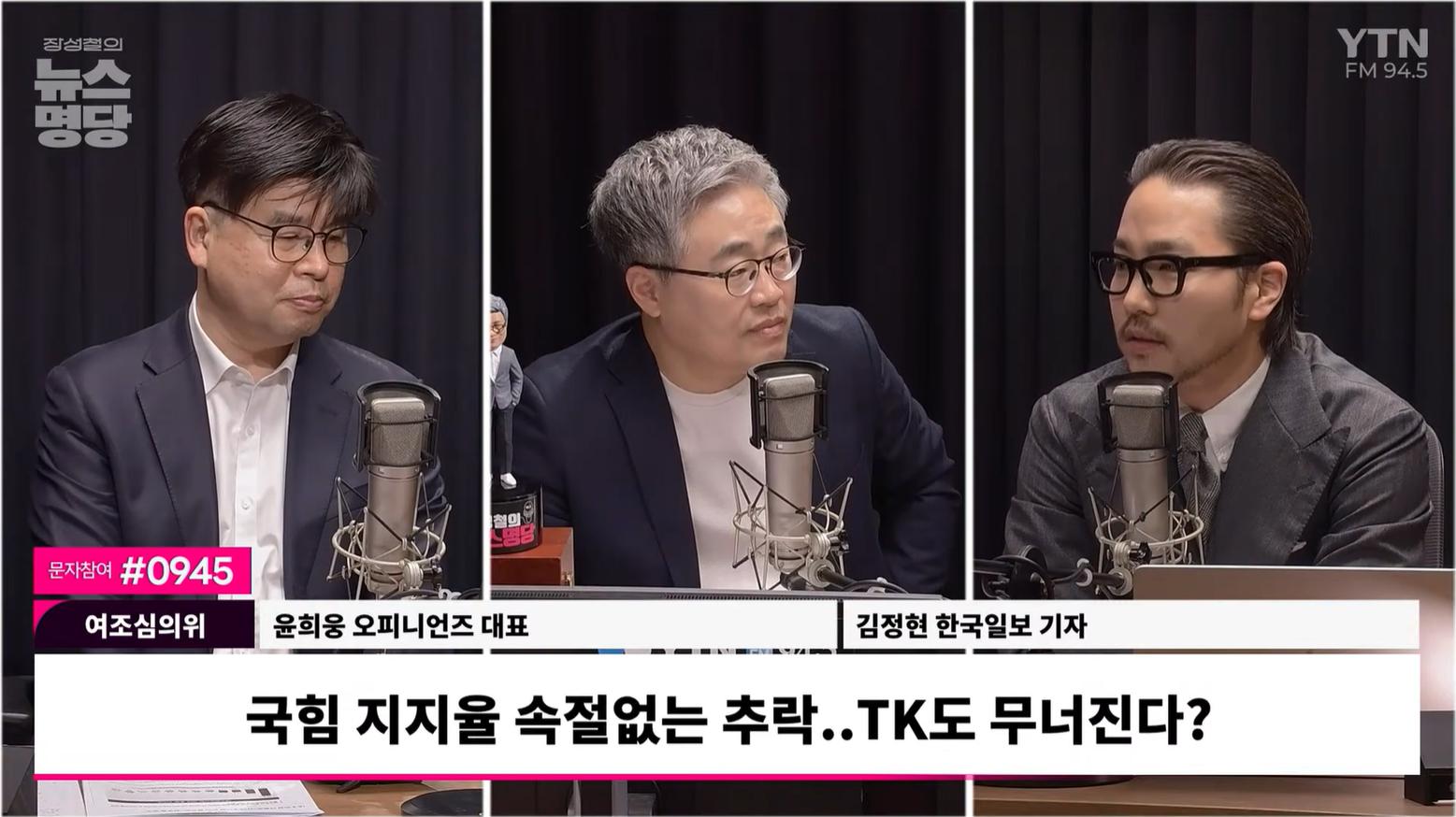 ◇ 장성철 : <장성철의 뉴스명당> 화요일 4부에서는 여론의 흐름과 물결 위에 떠 있는 민심을 세세하게 살펴보는 시간입니다. 오피니언즈 윤희웅 대표님, 한국일보 김정현 기자 어서 오세요.
