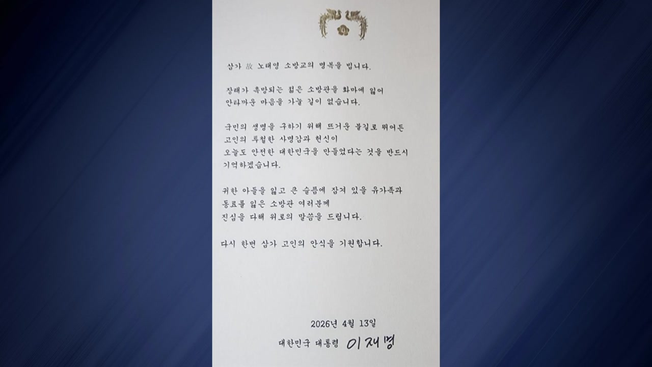 그러면서 고인의 투철한 사명감과 헌신이 오늘도 안전한 대한민국을 만들었다는 걸 반드시 기억하겠다며 아들을 잃은 유가족과 동료 소방관들을 위로했습니다.