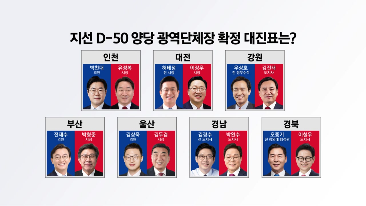 6·3 지방선거의 핵심, 광역단체장 공천이 속속 마무리되며 전국 7곳의 대진표가 완성됐습니다.
