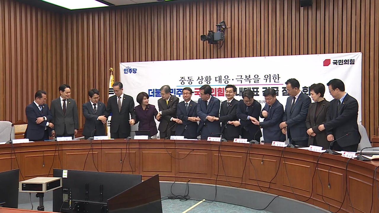 여야 원내지도부와 정부가 중동 사태 위기 대응을 위해 한자리에 모였습니다.