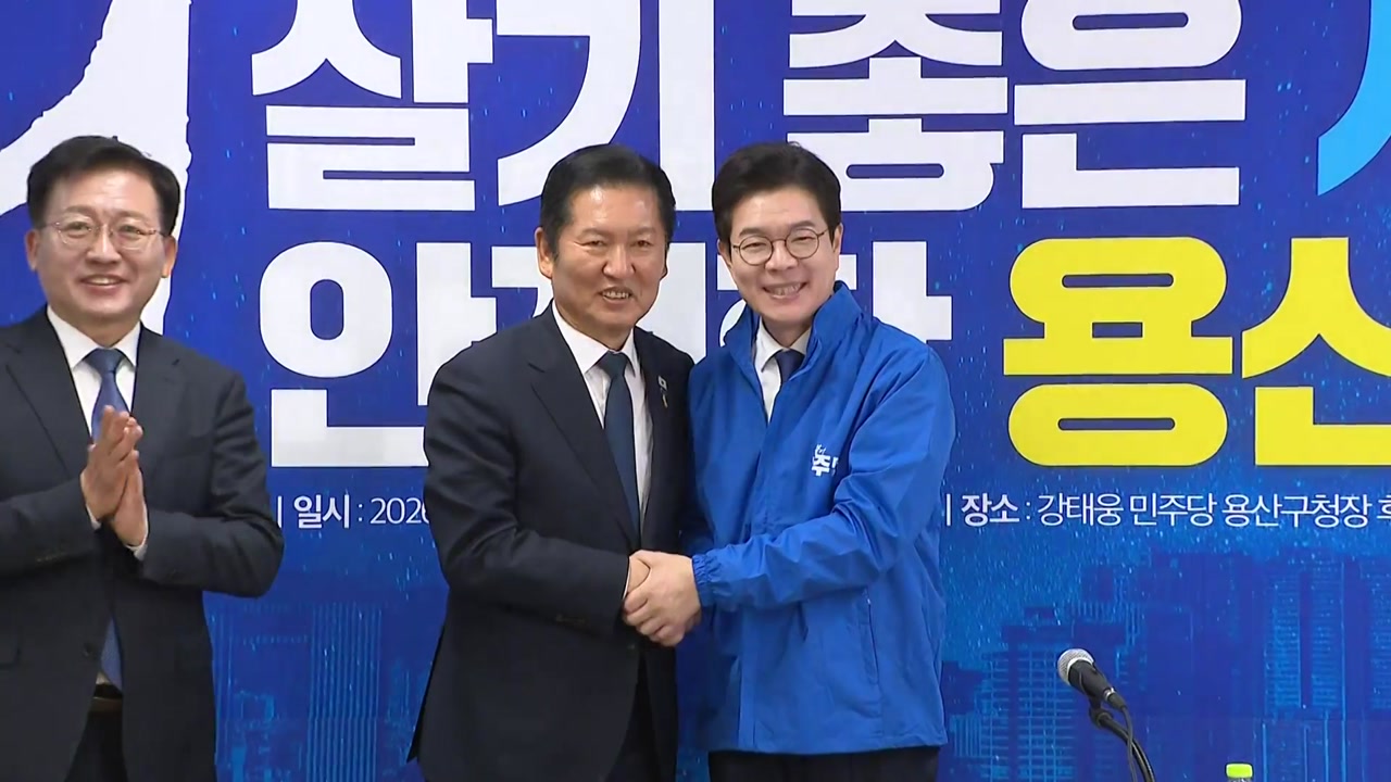 민주당 정청래 지도부가, 한강 벨트의 중심, 용산에서 정원오 서울시장 후보에게 '파란 점퍼'를 입혔습니다.