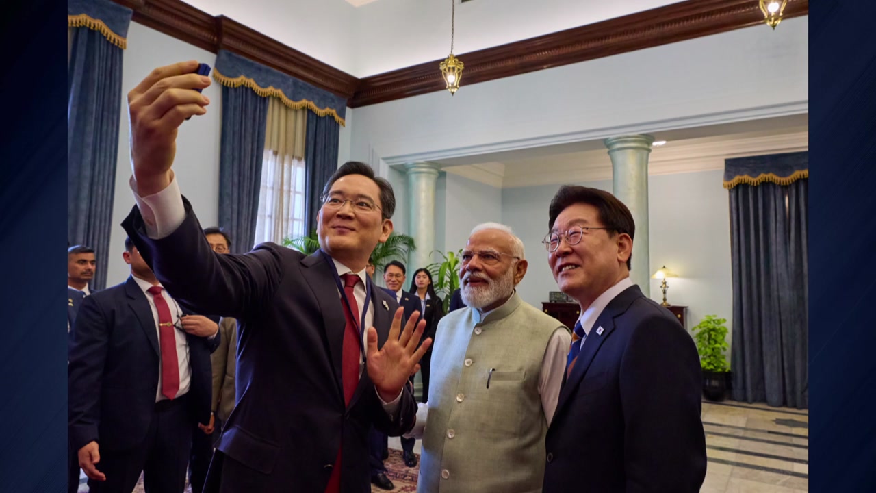 모디 총리가 주최한 오찬에서 이 회장이 인도 노이다 공장에서 생산한 갤럭시 스마트폰으로 셀카를 찍은 겁니다.