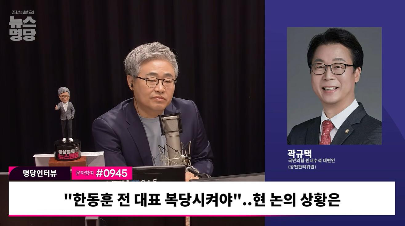 ◆ 장성철 : 감사합니다. 이상 국민의힘 곽규택 의원이셨습니다.