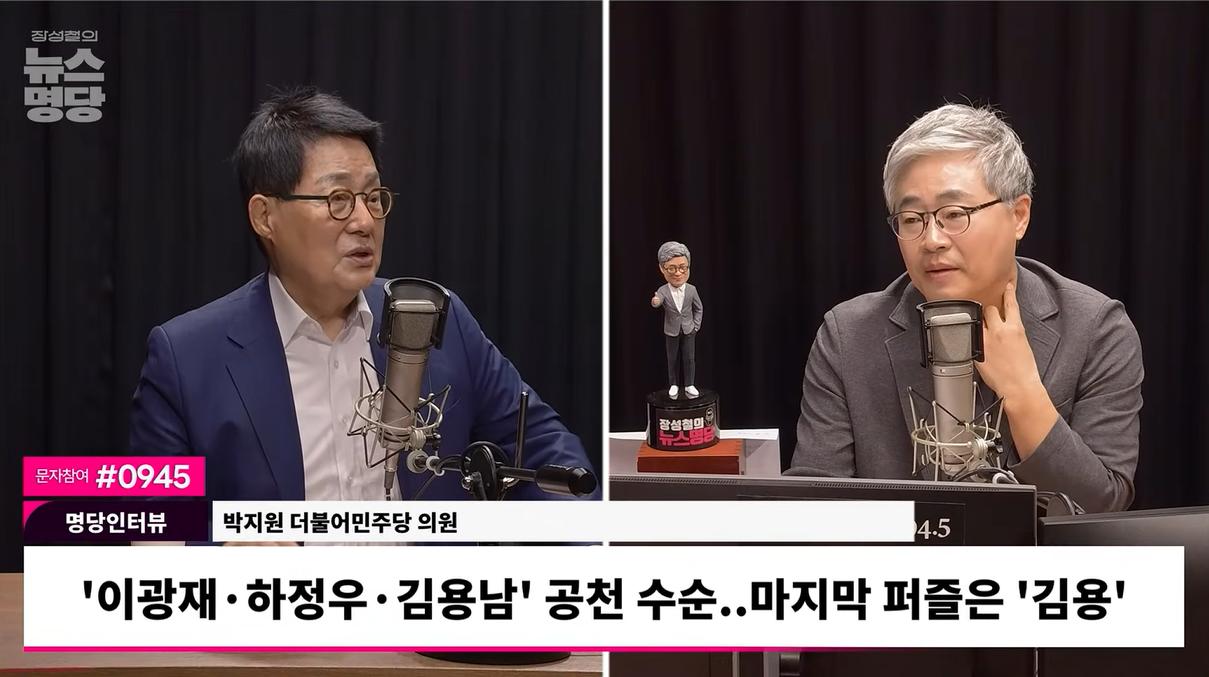 ◇ 박지원 : 아주 잘했어요. 제가 맨 처음부터 그랬잖아요. 두 분이 나갔는데 김남준 이재명 대통령 청와대 대변인이 먼저 갔어요. 영토 선점의 원칙을 적용해야 되고.