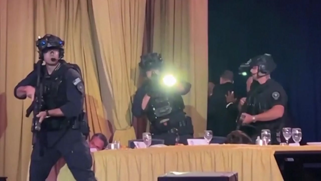 이 당국자들을 보호했고 가장 먼저 트럼프 대통령과 멜라니아 여사 그리고 주테이블에 있었던 내빈들을 먼저 대피시켰습니다.